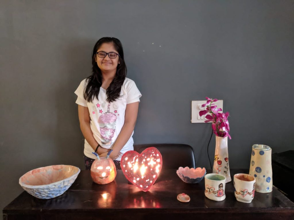 Karishma’ s work of art is a triumph in the face of overwhelming odds. Her every stroke of brush in creating her paintings is a great achievement and it means so much as it is hard won, for Karishma is a intellectually challenged girl born with a condition called downs syndrome.