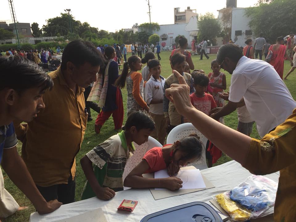 Sunday, 28th Oct., 2018This Sunday evening, during the festive season, 7 youngsters from DSWC enjoyed sharing, managing and organising activities for children from the low socioeconomic background at the Bhuderpura Sanskrutic hall, Ambawadi, Ahmedabad during the 4th Garage sale organised annually by a group of professionals.The event has a beautiful concept of sharing and caring for the less fortunate. It presented our youngsters with a unique opportunity to spread warmth and love, interact and arrange activities to entertain other children of their age and the general public. Sharan entertained them by playing some music on the keyboard. Om, Yug, Akanksha, Jeel, Ishan , Sharan and Om warmly conducted the activities and presented gifts to all the participants. They not only learnt a few nuances of social interaction, and enjoyed the evening themselves, but also brought joy on the faces of the visitors, participants and conveyed a positive message regarding their abilities to the society. DSWC appreciates with gratitude this unique opportunity provided by Dr Tushar Kapadia and his family and friends. The assistance and presence of our enthusiastic volunteers, Mr Mihir and Mr Ashlesh and the support and guidance by the organisers, made the evening absolutely vibrant with fun and cheer all around !