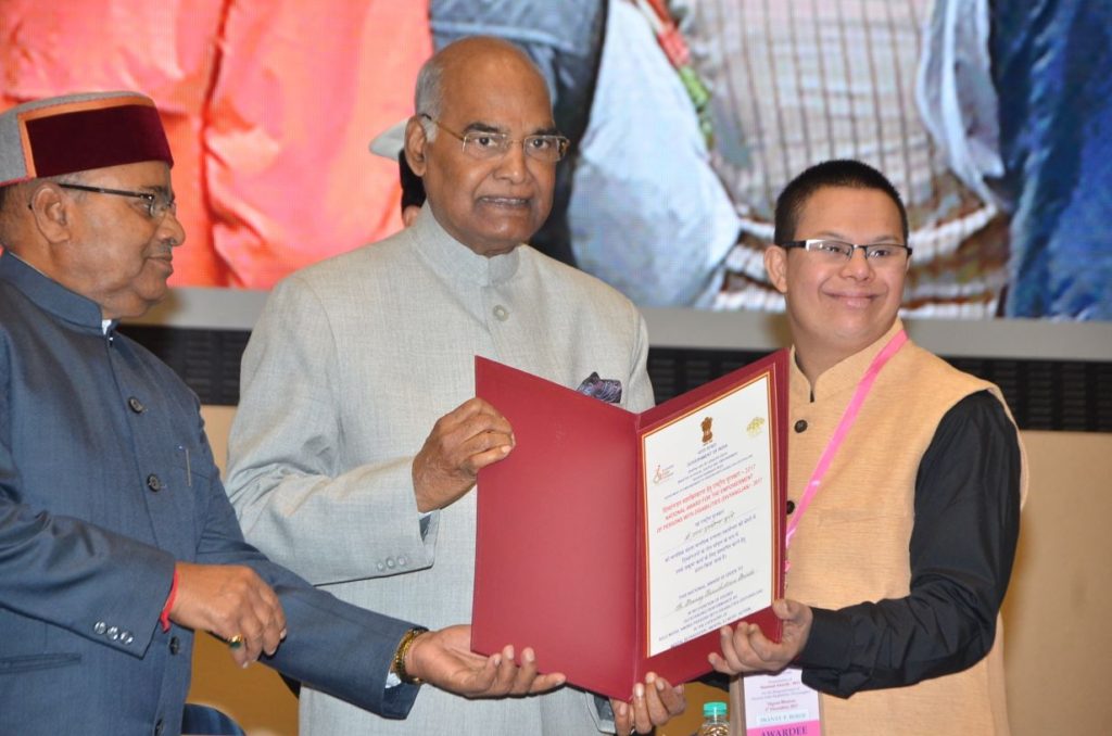 Pranay has received two National awards one as Best Employee in 2014 and another as Role Model in 2017. He has also received one International Award that is World Down Syndrome Day Award 2014.